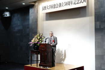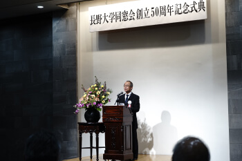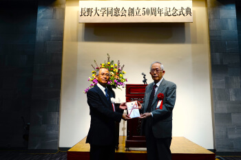 令和7年11月1日に上田高砂殿にて長野大学同窓会の創立50周年記念式典と祝賀会を挙行しました。同式典は、本会が1975年3月9日に同窓生の有志により結成され、今年で50年の節目の年を迎えたことを記念して、同窓会理事会が中心となり企画したもので、土屋陽一上田市長、公立大学法人長野大学平井利博理事長、小林淳一学長をはじめ多くの来賓の皆さま、同窓生、在学生、教職員に出席していただきました。