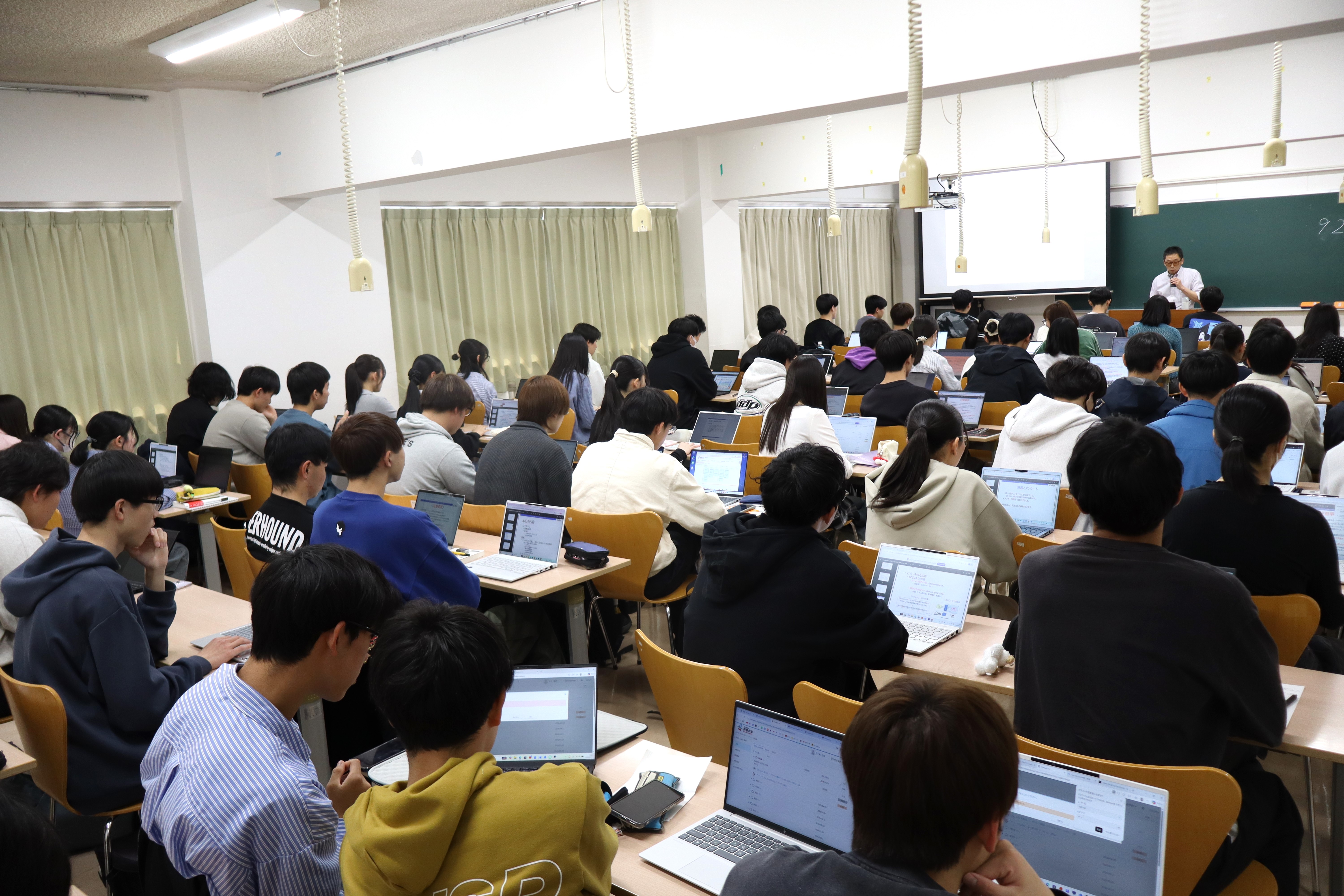 新入生にとっては大学生活最初の授業となり、期待と緊張が入り混じる中