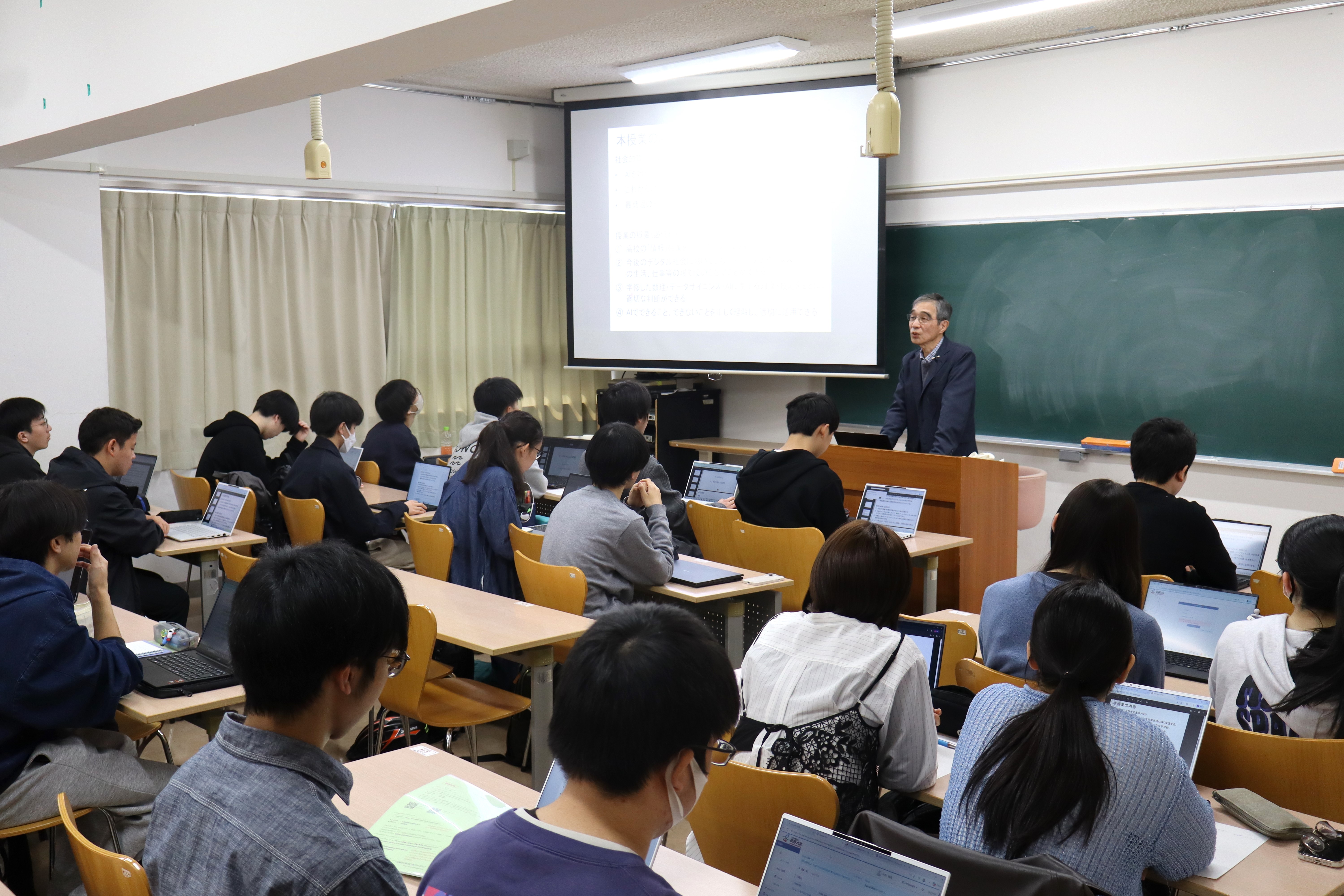 今日は共創情報科学部の学生全員が受講する、「データサイエンス概論」から授業がスタートしました。