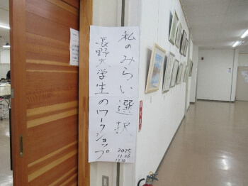 第3回目プログラムを11月2日(日)に開催しました。受講者は、9名。テーマは「私のみらい選択」ワークショップ。2023-2024年度カレッジ長大ではなかったメニューです。大きな枠組みは教職員が決めましたが、当日の発表内容と進行等は学生スタッフが担いました。