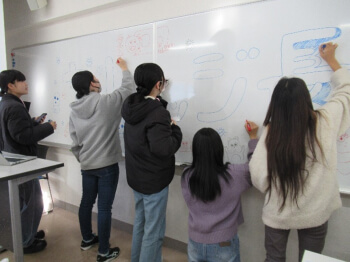 2-306教室 | 成果発表会の準備 | 受講者と学生スタッフとの協働を作品化する |