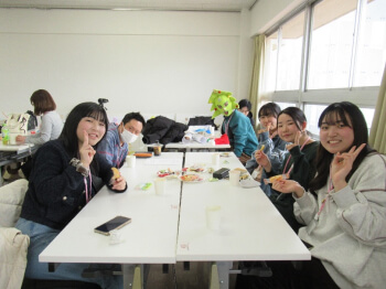 午後はカレッジ長大では初めての企画、「クリスマス会」です。カレッジ長大活動動画を見たり、ゲームを楽しみました。学生主導のプログラムです。また、保護者からのお菓子差し入れもありました。