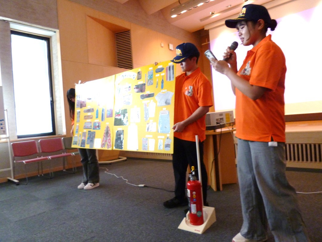 学生消防サークルのメンバーが考案した防災クイズを出題し、身近な製品が火災の原因となる可能性について、クイズ形式で楽しく学びました。