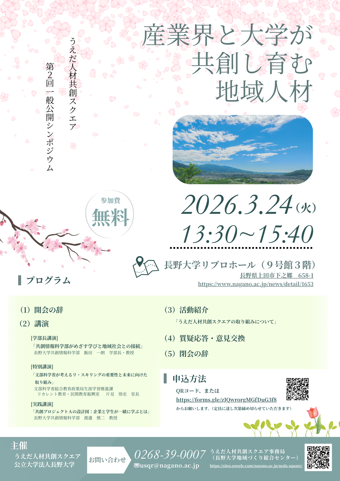 令和8(2026)年4月、公立大学法人長野大学に初めての理工系学部となる「共創情報科学部」が開設します。本シンポジウムは、その開設を機に、同学部の学びと、大学と企業・地域が連携した人材育成の可能性を広く共有する機会として開催します。