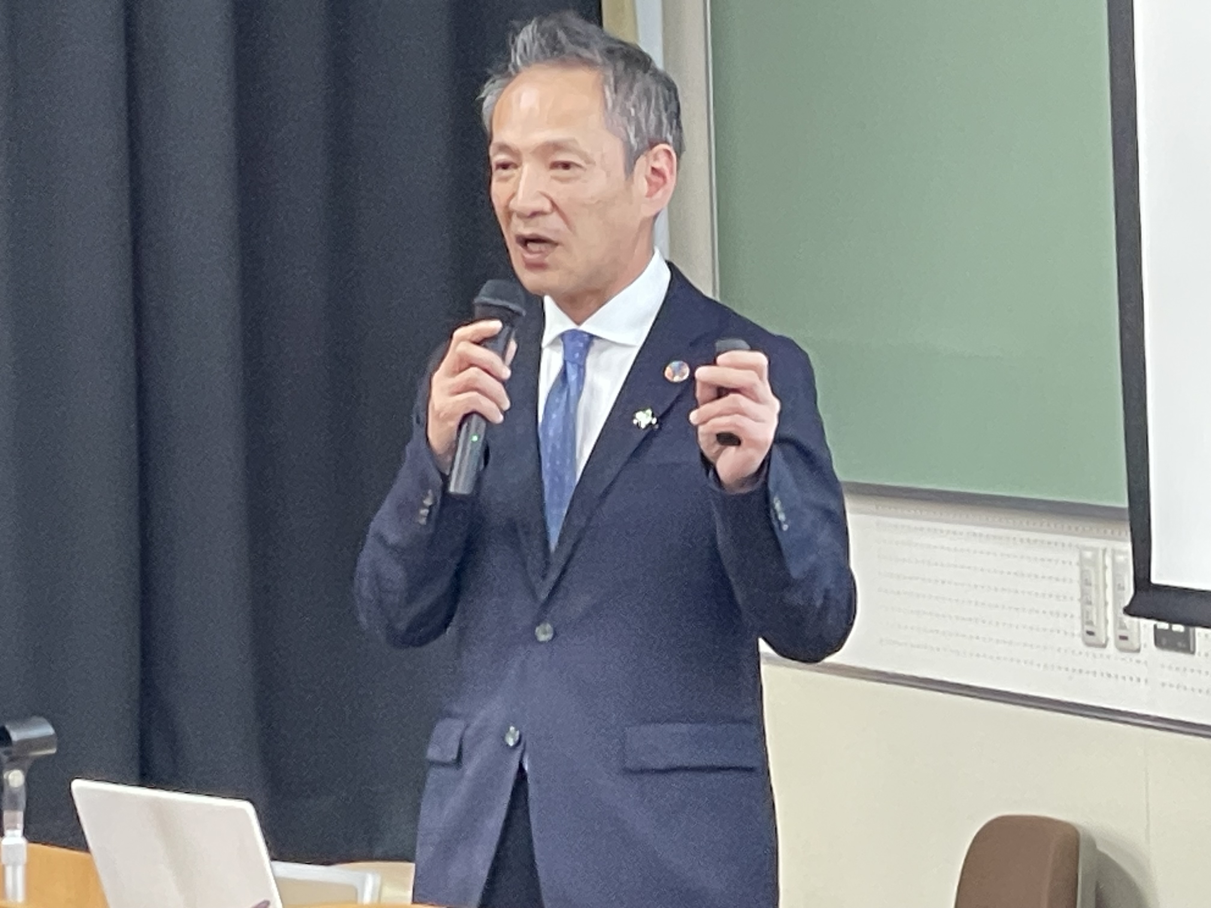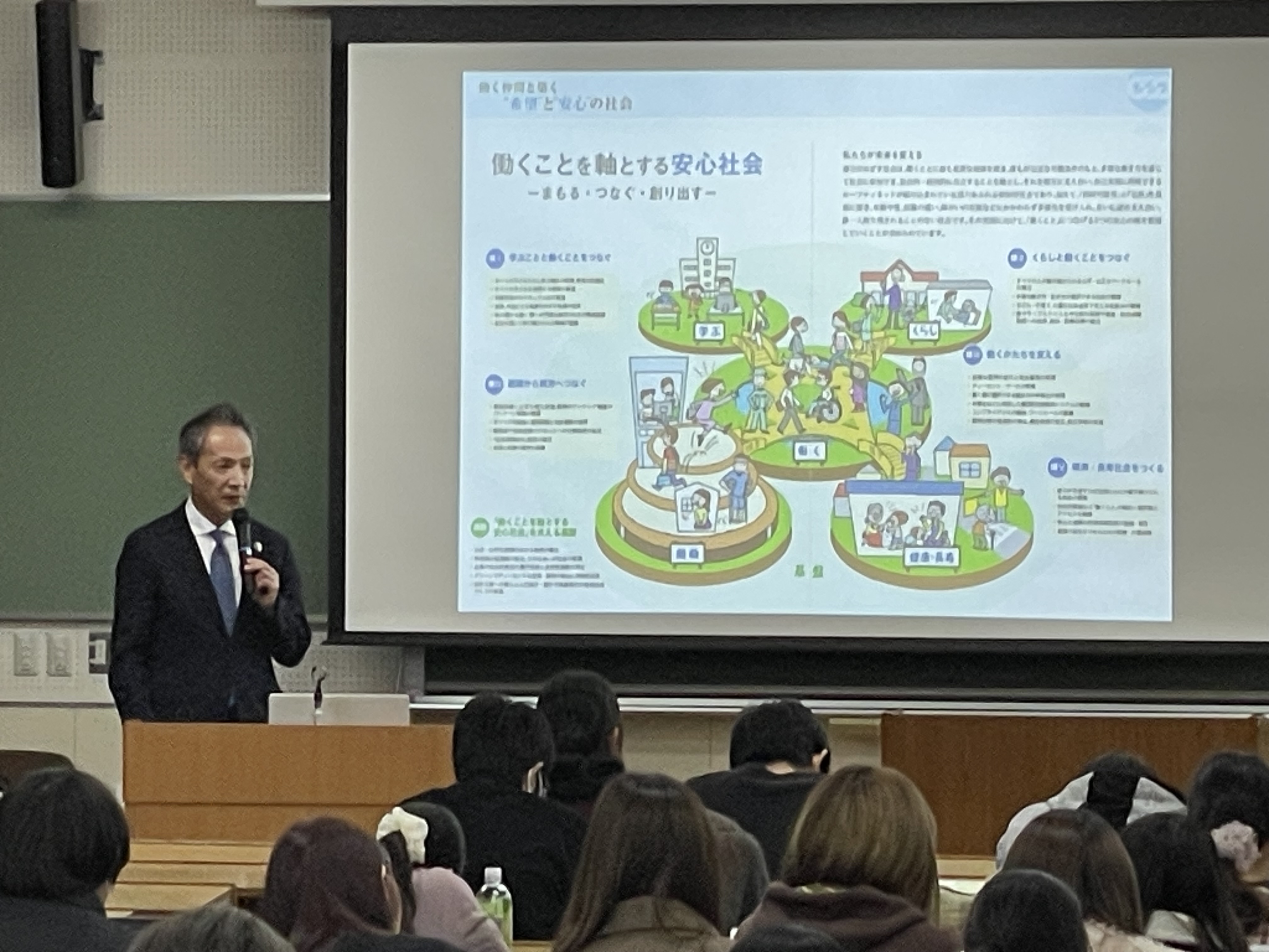 企業情報学部の鈴木誠教授が担当する「若者と労働」という講義は3学部の学生が200人程度履修しています。