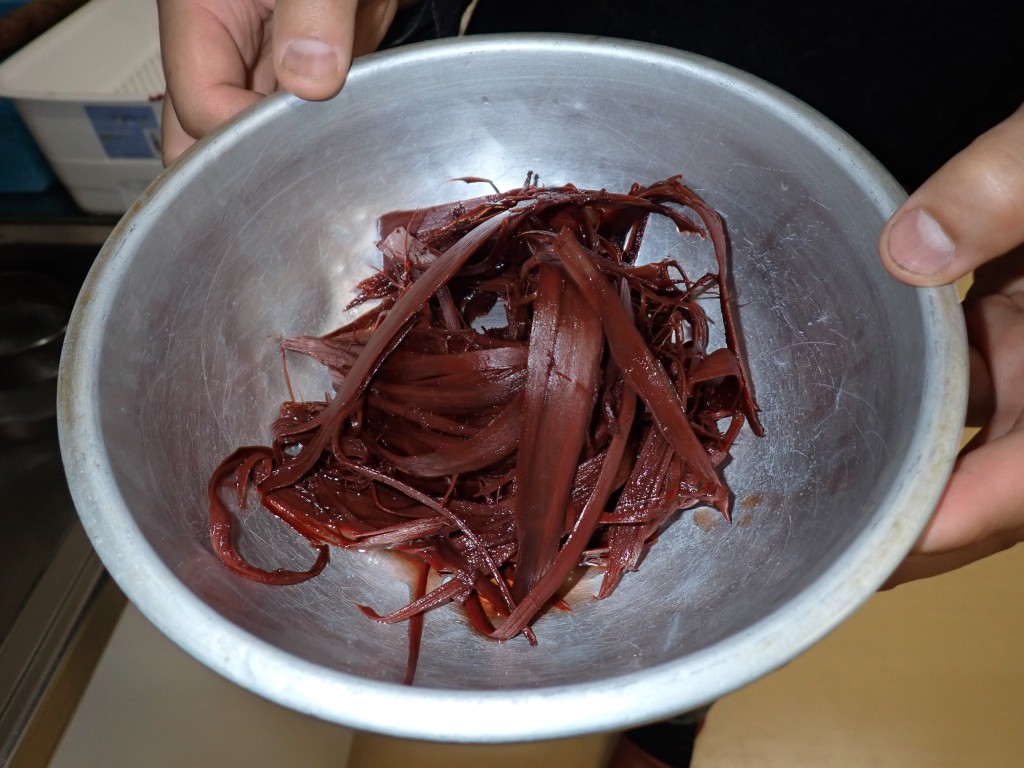 アカマツの内皮を加工する工程