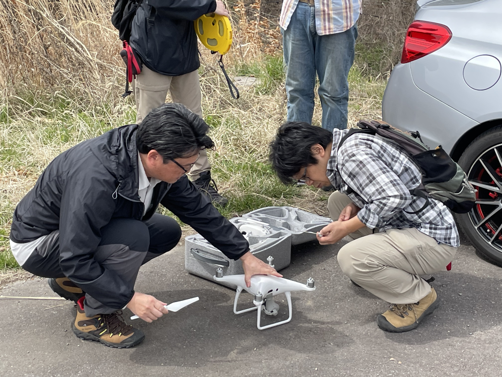 ドローンを用いた空中撮影により、対象林分の地形情報および樹冠構造などを取得しました。取得したデータをもとに、三次元モデル(3Dマップ)を作成し、アカマツおよび広葉樹の分布や密度を調査します。