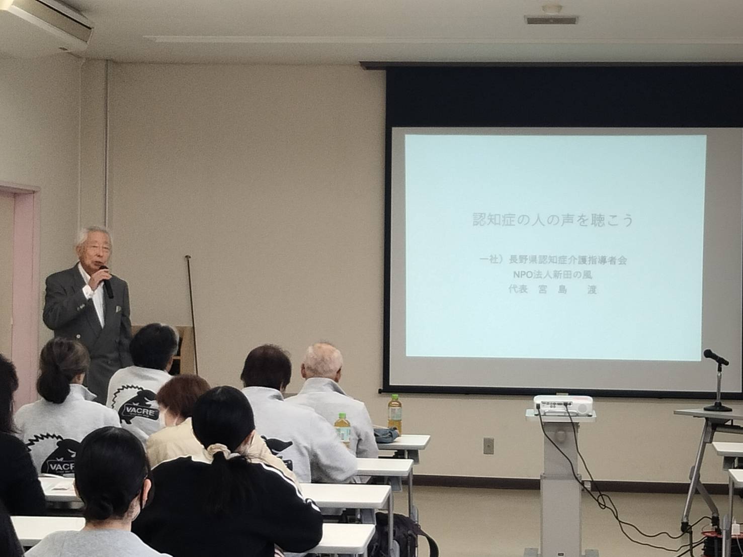 2025年11月9日、認知症とともにいきるまち・うえだ 希望都市宣言 関連事業の一環として、「住み慣れた地域で安心して暮らすための地域で認知症を支える講座」(主催:NPO法人新田の風、共済:新田自治会・上田市、協賛:一般社団法人長野県認知症介護指導者会)が、上田市 市民プラザ・ゆうで開催されました。