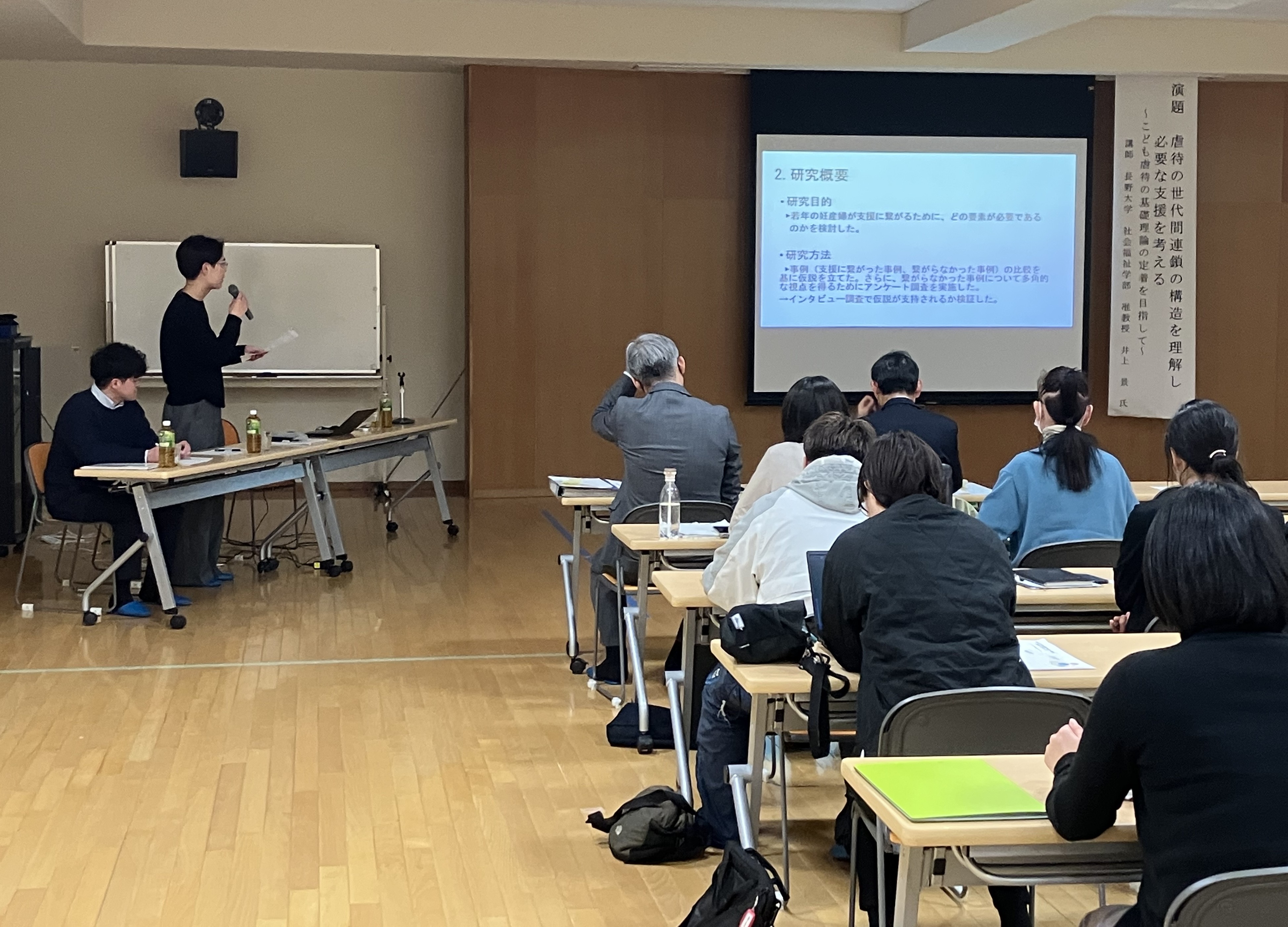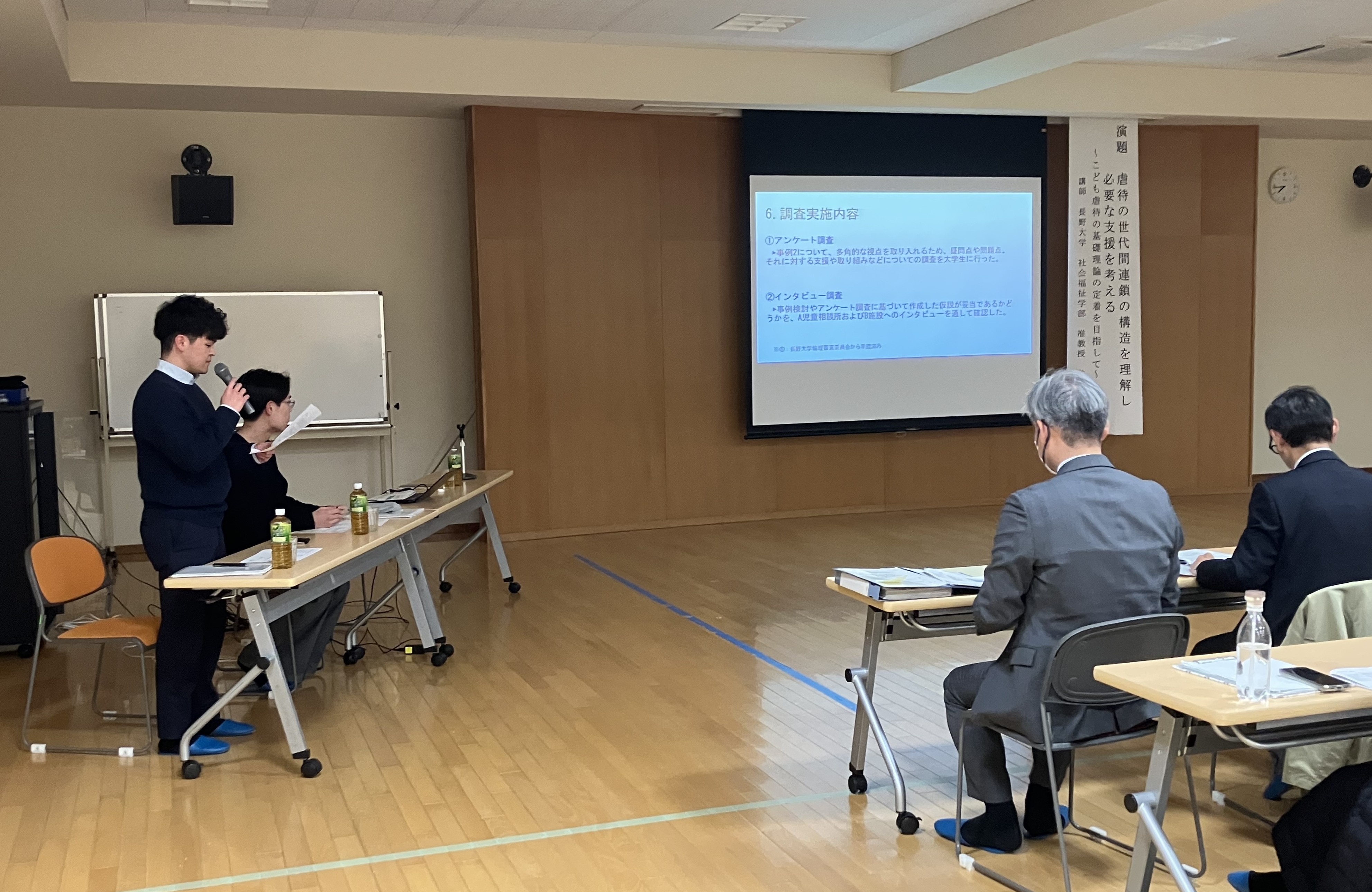 上田市および周辺地域で子ども虐待の支援に関わる方々を対象に、上田市子育て・子育ち支援課が主催した研修会において、以下のように、教員は、子ども虐待の支援の考え方を解説し、専門ゼミの学生は、1年間の研究成果を報告しました。