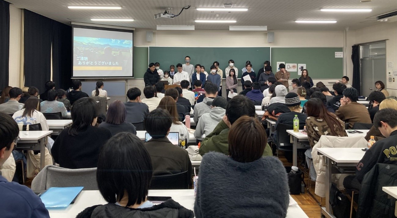 1月22日に「課題探求ゼミナールⅡ」(環境ツーリズム学部)の報告会を実施しました。「課題探求ゼミナールⅡ」は、必修科目であり、本学での学びや研究において必要な基礎力を養います。そのため、今回の報告会は、1年生の集大成とも言える活動となりました。
