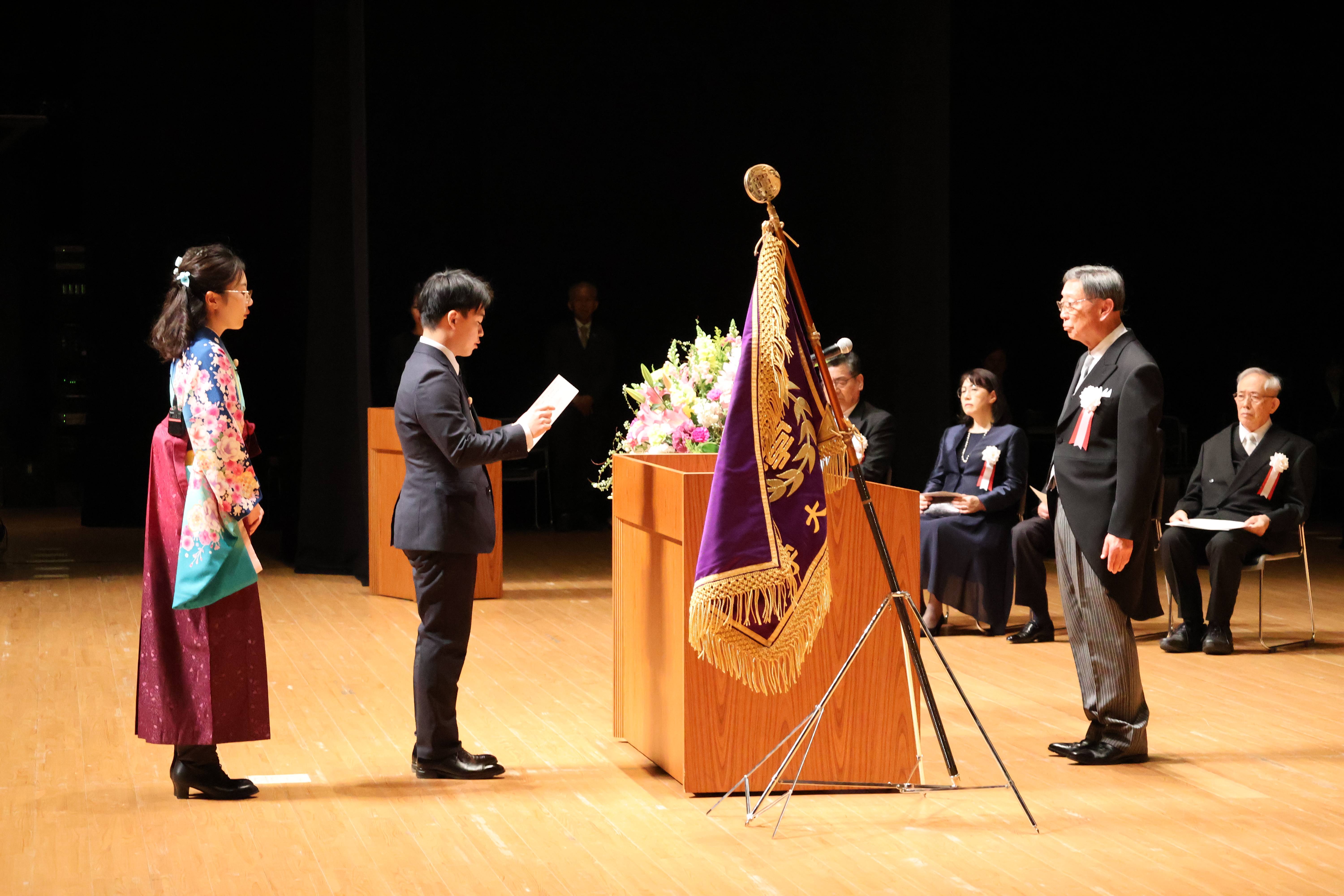 式典の中では、卒業生・修了生のことばとして卒業生代表と修了生代表の2名が大学生活を振り返るとともに、