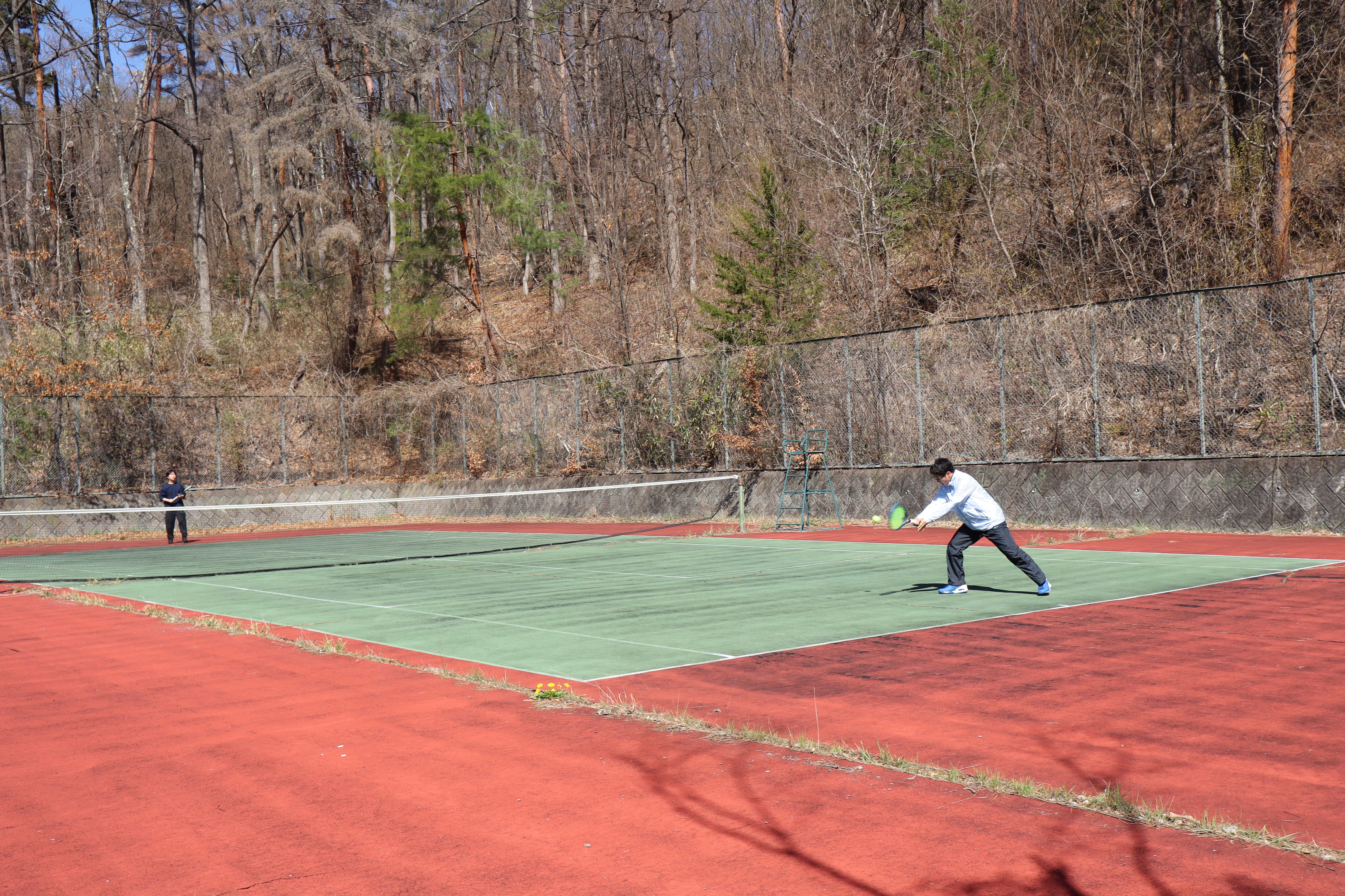 早速在学生の先輩たちとラリーを楽しむ新入生たち